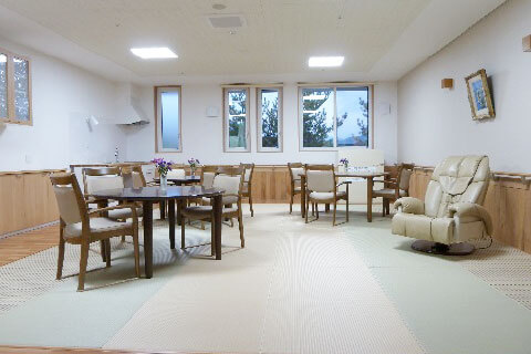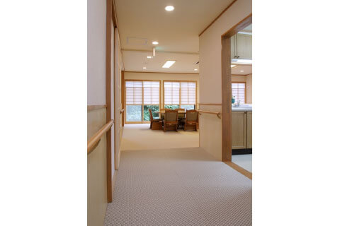 ご高齢者施設では食堂、談話室居室内にも敷き詰め施工されております